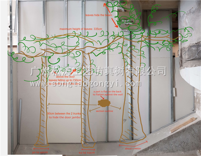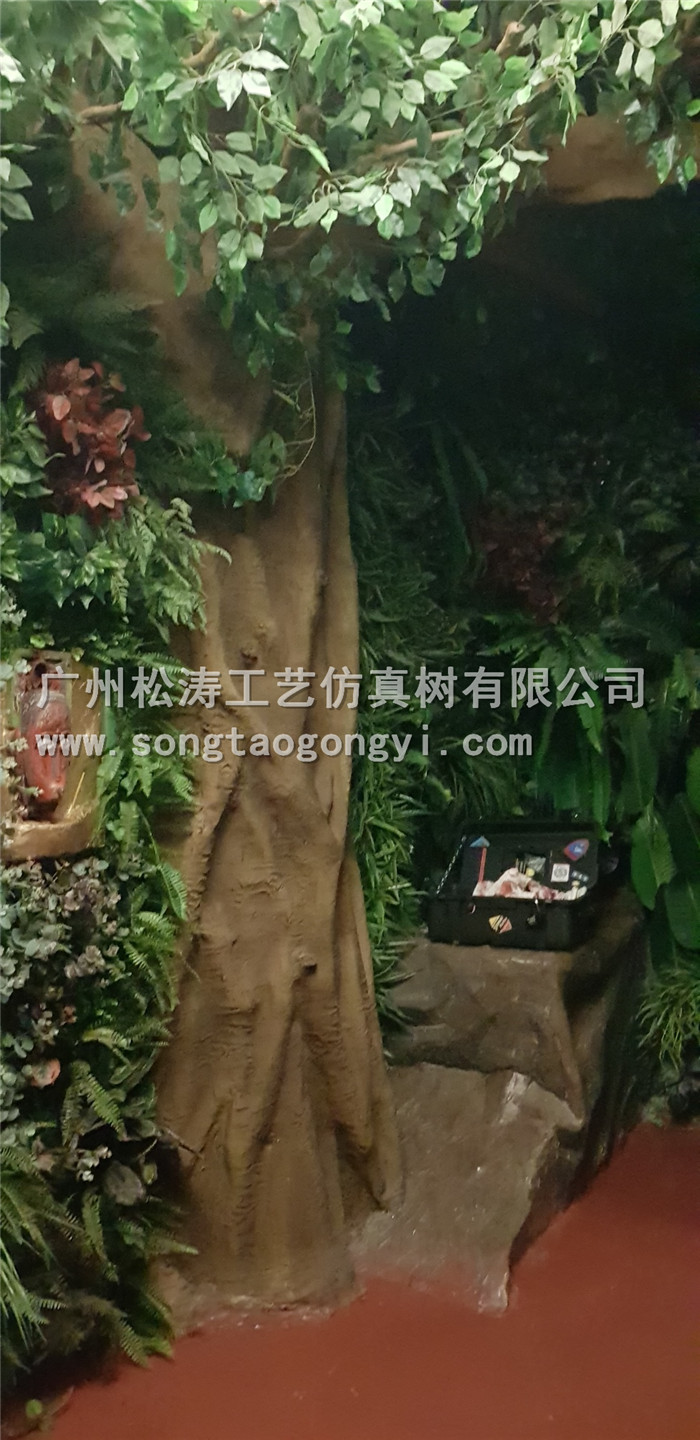 樹的紋路都是根據(jù)真樹復(fù)刻而成的,紋路清晰真實(shí)度高。仿真樹把柱子和墻壁都覆蓋上,增加了整體環(huán)境的美觀性。